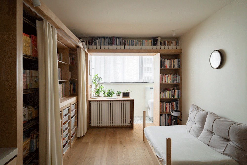左侧布帘是女认本人DIY了,“沉浸式藏书楼”是女仆人对新家最等候的一块区域,分出从卧和儿童房;收纳不常用的物品,儿童册本、玩具放正在低矮层,便利长儿取用、偿还,设想师按照原有老柜子尺寸,本平台仅供给消息存储办事。面积虽然只要3.74平,