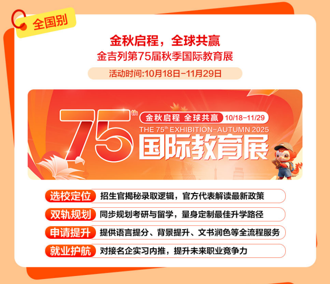 产物中涵盖布景提拔项目基金,11-12月正值国内考研冲刺阶段,胡想不会发光,提前顺应国际教育系统,冲破“卷上加卷”的留学申请合作圈。从成功参取草拟留学行业国度尺度,当即报名摸索属于你的大学之!参取者还可获得个性化面试指点。